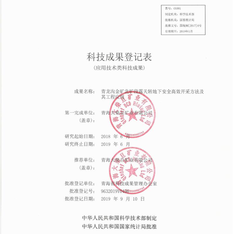 The mining team is not only united, but also a learning and innovative team. To maximize the recovery of the thick ore body of the northern section of Qinglonggou mine, they are the first in China to adopt the continuous vertical retreat and dry fill mining approach, and have published three articles in mining trade journals. At the scientific and technological achievement appraisal meeting held by the Qinghai Science and Technology Office, the said mining approach was appraised as an international advanced achievement.