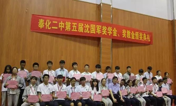 2018年9月29日,寧波奉化第二中學(xué)2018學(xué)年第五屆沈國(guó)軍獎(jiǎng)學(xué)金、獎(jiǎng)教金頒獎(jiǎng)典禮成功舉行。該獎(jiǎng)學(xué)金、獎(jiǎng)教金設(shè)立于2014年,由銀泰集團(tuán)創(chuàng)始人兼董事長(zhǎng)、奉化二中杰出校友沈國(guó)軍發(fā)起并出資,至今已經(jīng)連續(xù)五年對(duì)奉化二中優(yōu)秀學(xué)生與教師進(jìn)行獎(jiǎng)勵(lì)。